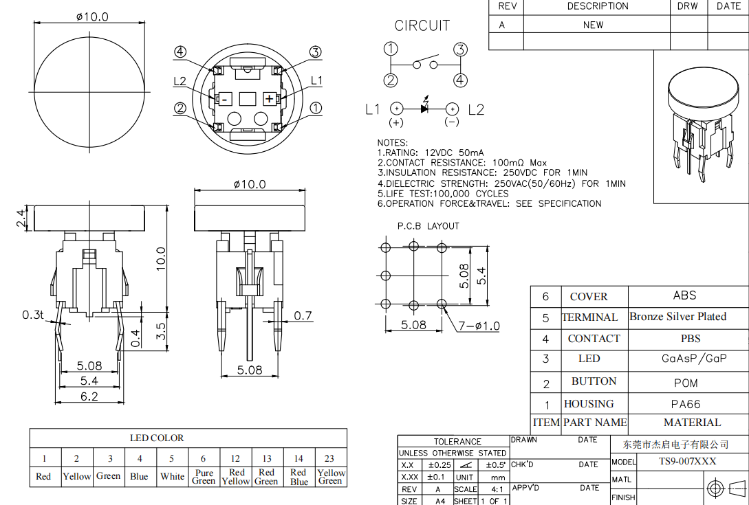 接觸電阻:50mΩ(max)絕緣電阻:100MΩ(min)