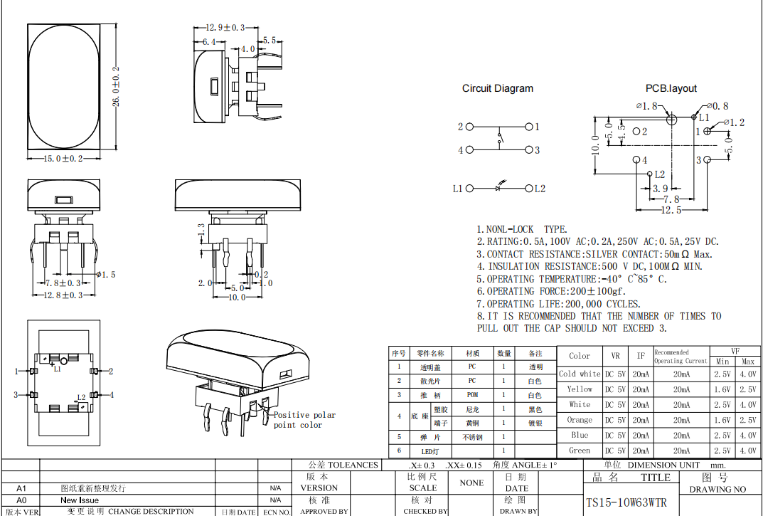 關鍵詞:長方形,開關,輕觸,帶燈,TS15